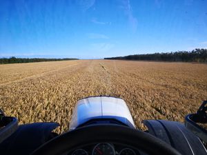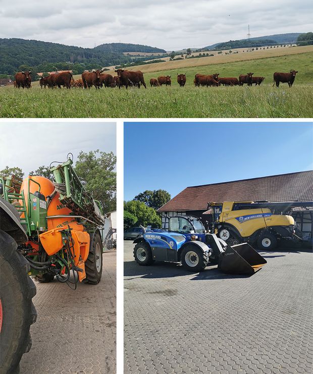 Ich war auf einem Ackerbaubetrieb mit insgesamt 1300ha LN, davon sind 1000ha Ackerland und 300ha Grünland. Der Betrieb liegt in Eisenach/Thüringen/Deutschland. Zum Betrieb gehören auch noch ca. 180 Mutterkühe die das ganze Jahr auf einer Weide im Freien gehalten werden. Der Fuhrpark umfasst 5 Traktoren, der kleinste ist ein Fendt718 Vario TMS und der größte ein Fendt 942 Vario, 2 Mähdrescher einen Teleskoplader und noch ein paar mehr Maschinen.