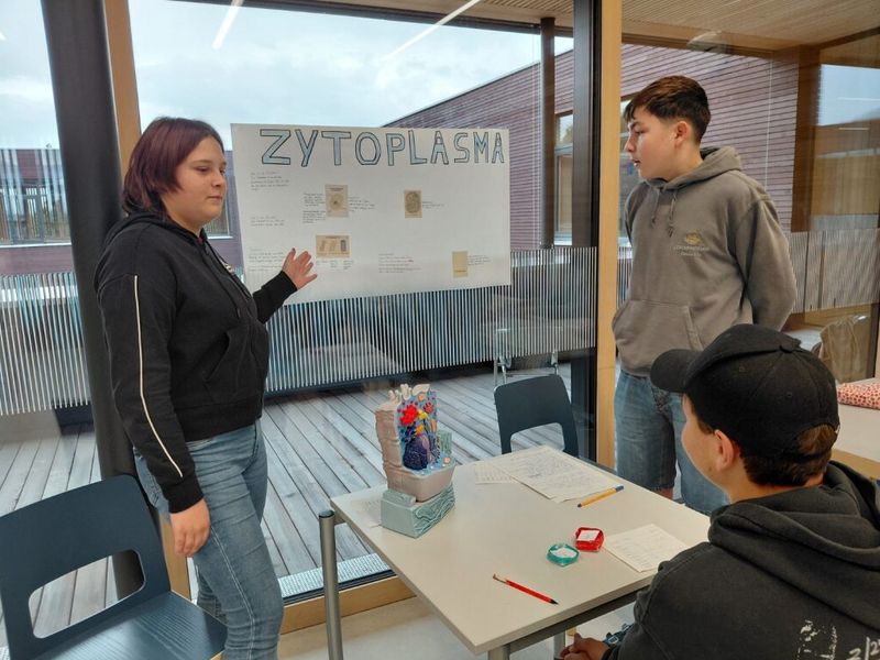 Wir selbst gingen auch von Station zu Station und bekamen dort jedes Zellorganell detailliert erklärt. Alle Stationen waren sehr schön gestaltet, wurden sehr gut erklärt und hatten interaktive Elemente. Mir hat die Stunde sehr gefallen, weil man nicht nur stillsitzen musste, sondern sich bewegen konnte und auch selbst erklären durfte. So habe ich auch die Themen der anderen besser verstanden.