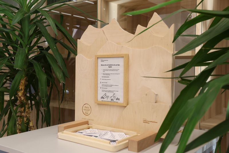 Neben der Textsammlung erstellte das Team ein Bergmodell, das nun das gesamte Schuljahr vor der Bücherei stehen bleibt. Aus diesem Modell können alle Besucherinnen und Besucher sowie die Schulgemeinschaft Gedichte entnehmen, sie mit auf die Höhen unserer Alpen nehmen und dort in ein Gipfelbuch eintragen. Wer möchte, postet ein Foto des Eintrags samt Aussicht auf Instagram und verlinkt das BSBZ. So freuen sich auch die Fans unserer Schule über tolle Bergmomente.